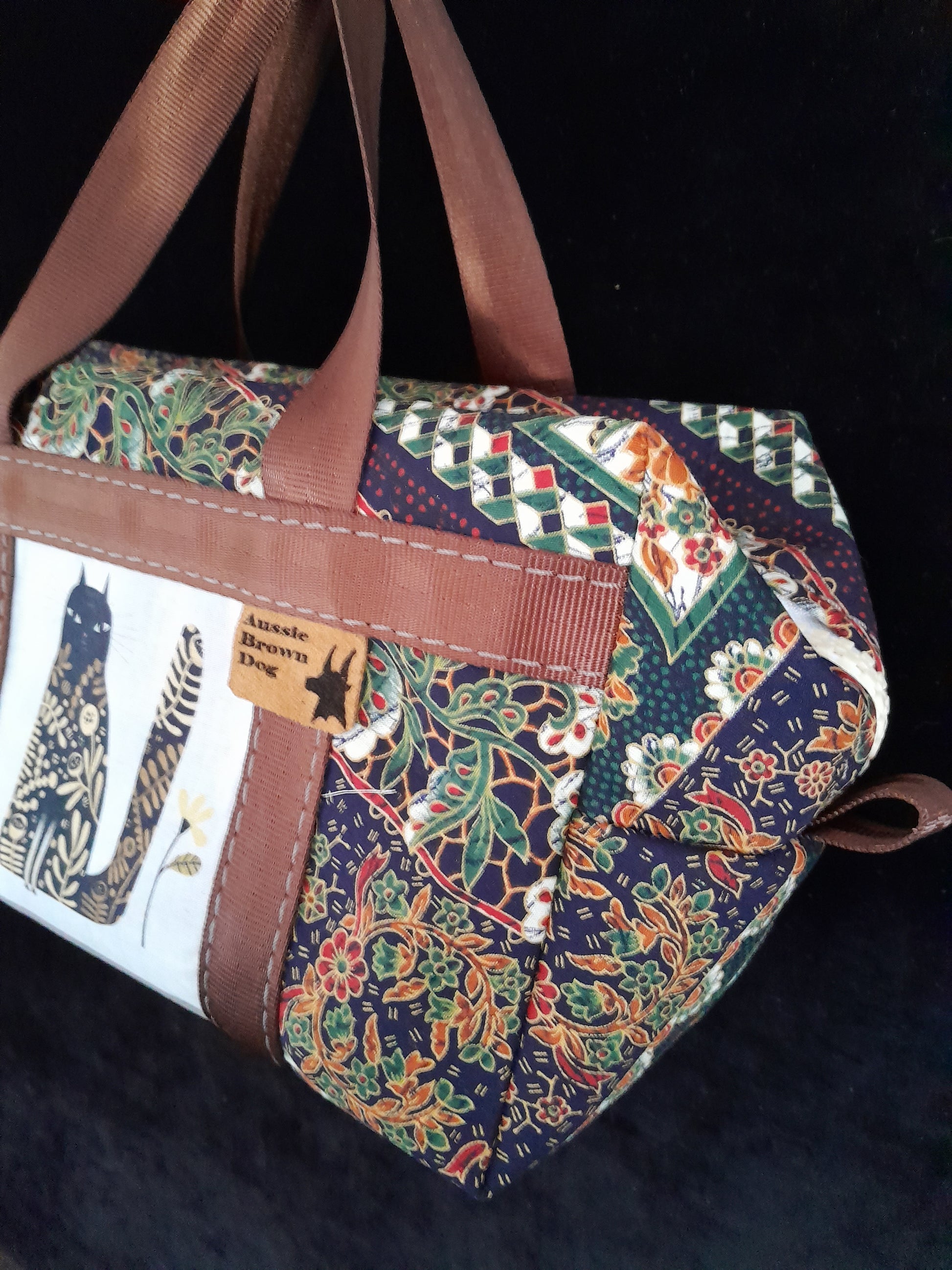 'Classy Cat' Small utility bag - Vintage Floral fabric with cat feature panel.