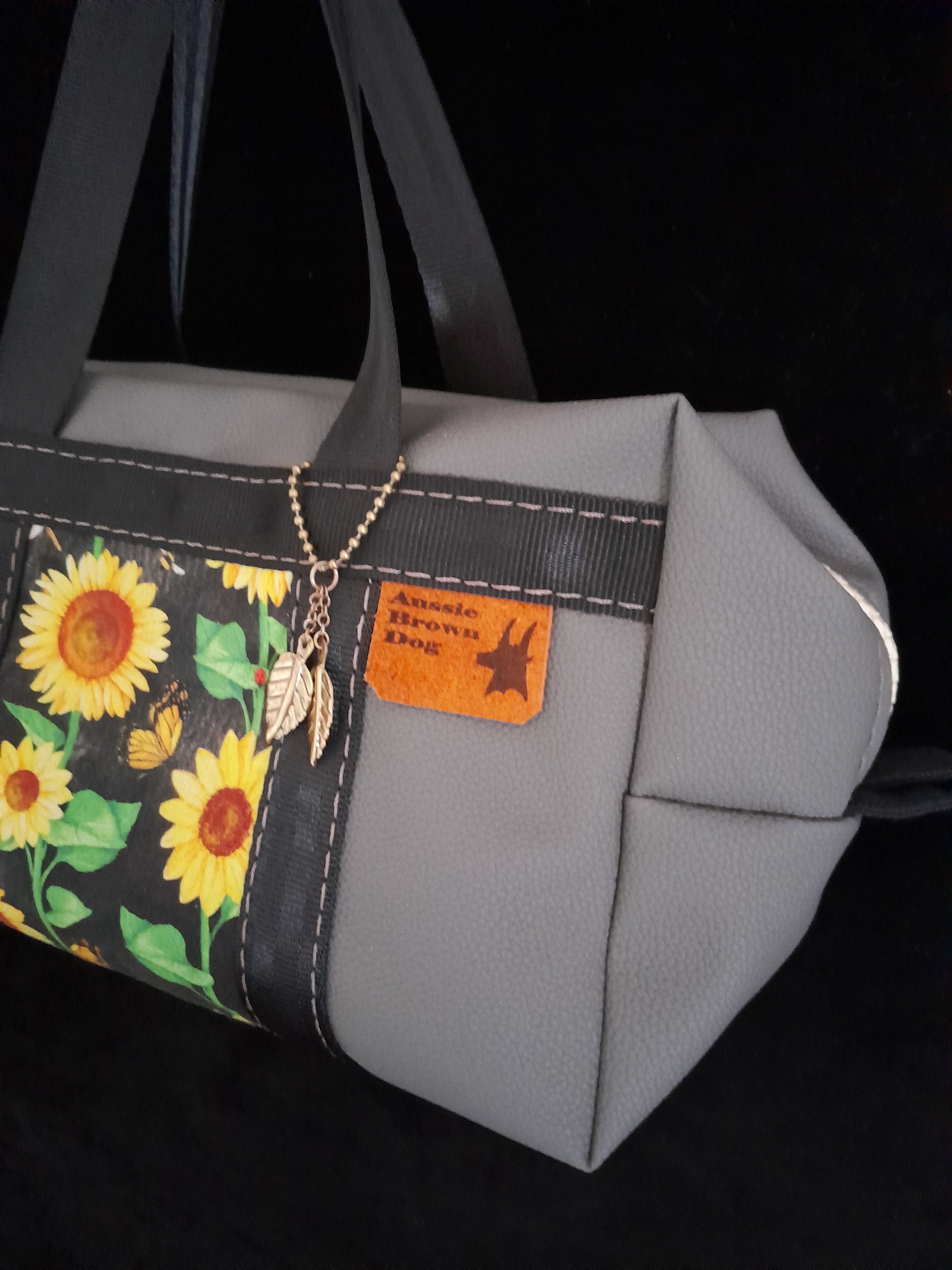 'Garden Lover' Small Bag made on waterproof faux leather. Grey with gorgeous yellow Sunflower feature panel.