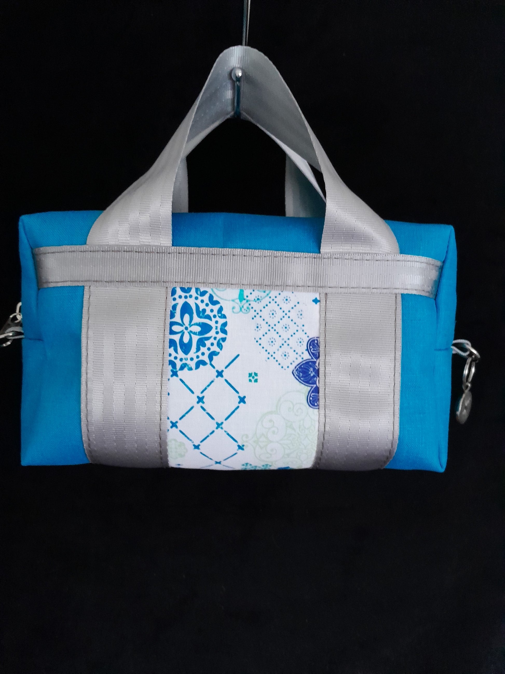 'Mosaic Blues' Small utility bag in linen and cotton fabrics, polyester lining. Very pretty cool blues.