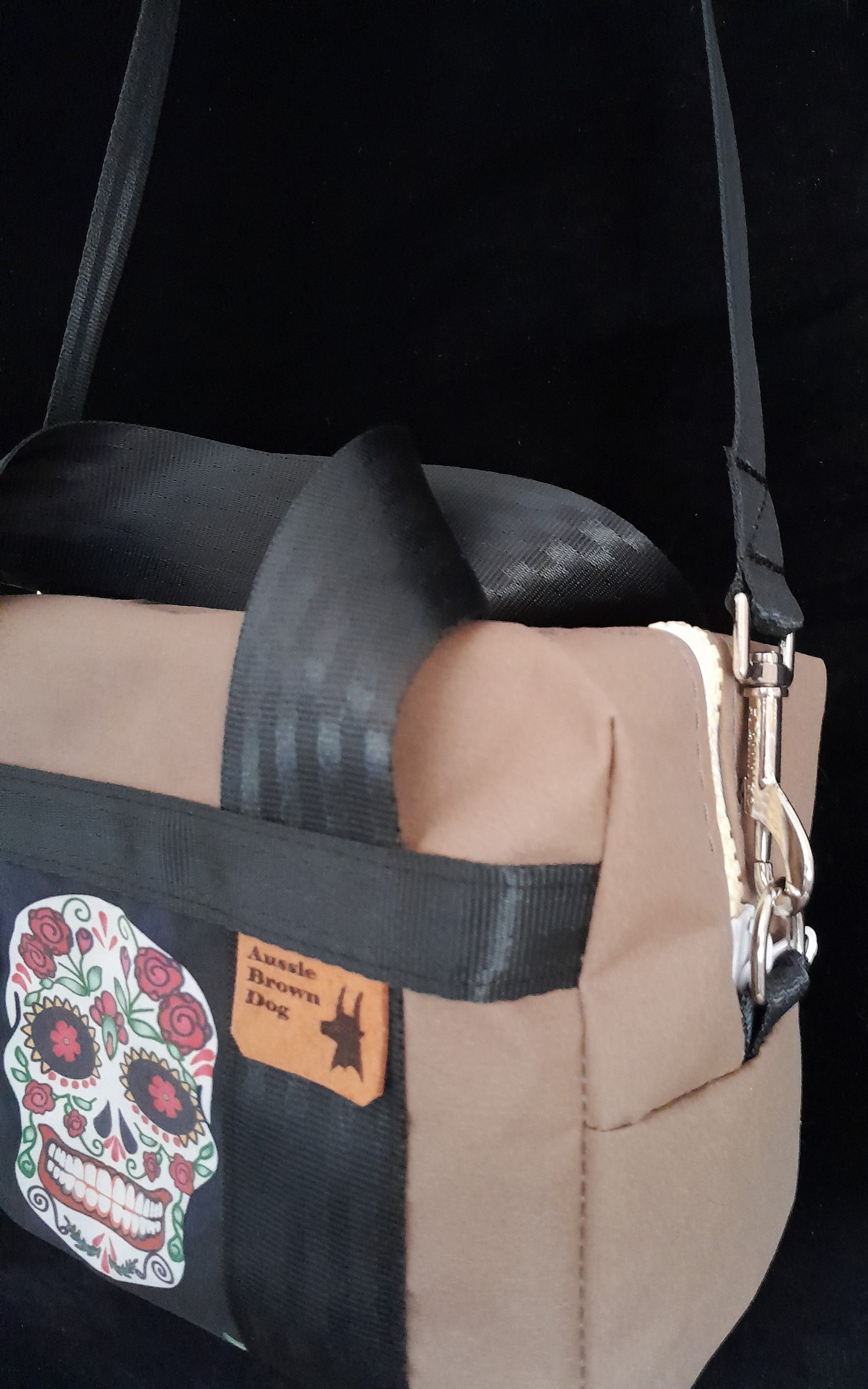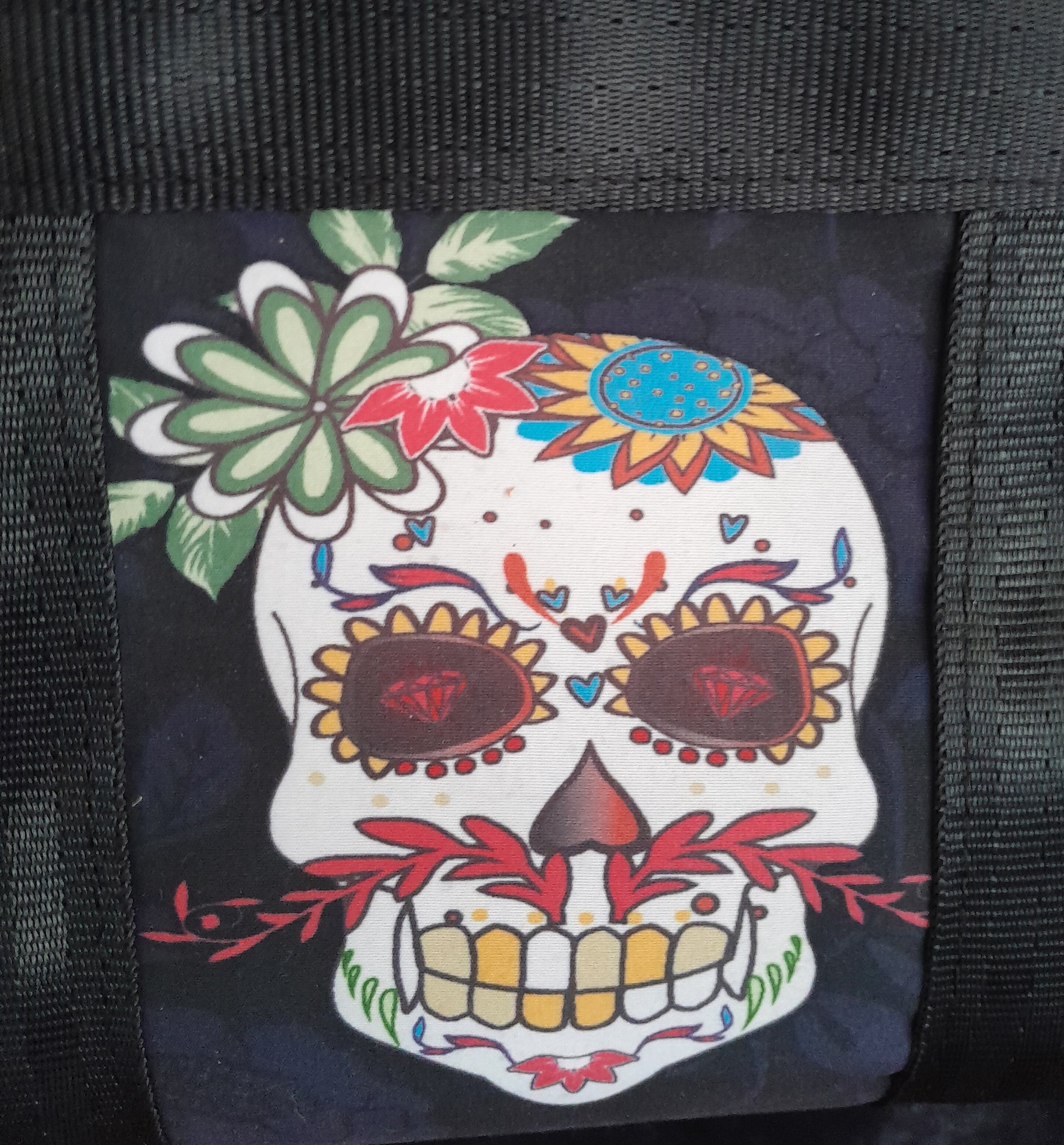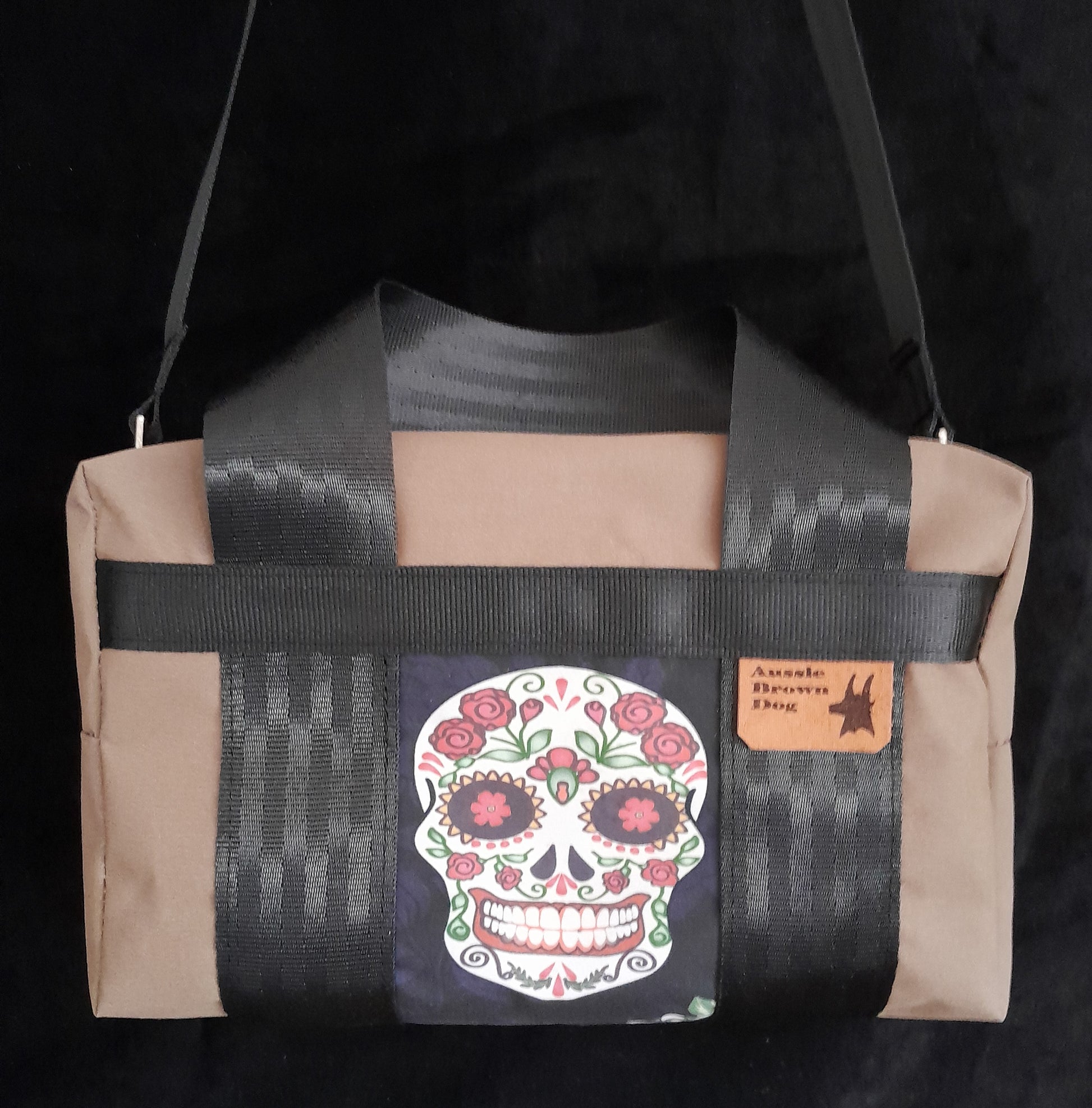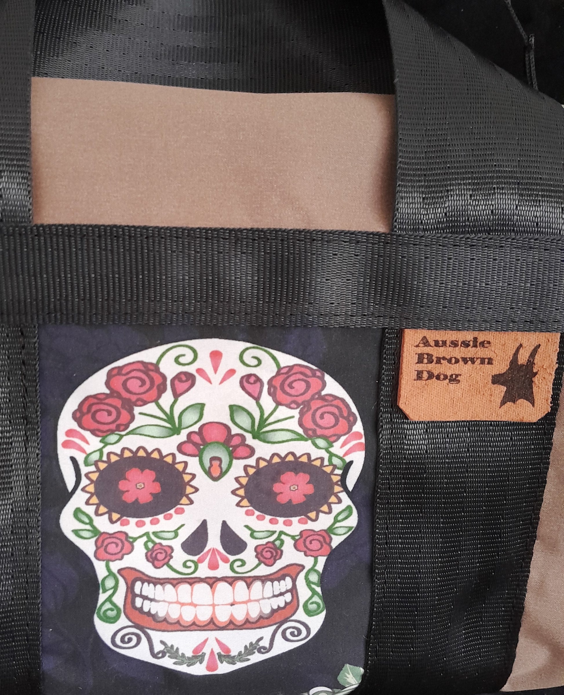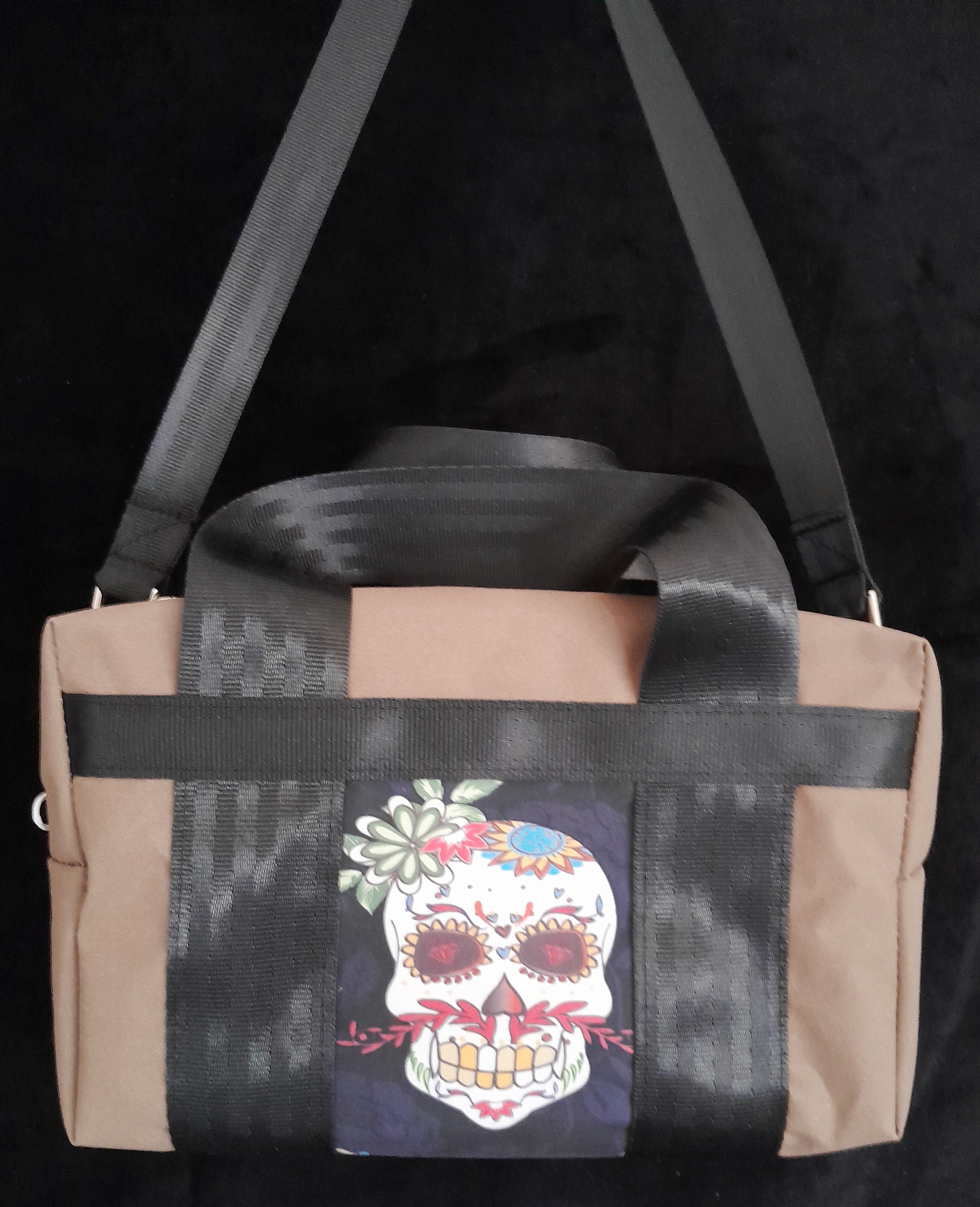 'Say Cheese Sugar' Small waterproof canvas utility bag with sugar Skull feature panel.