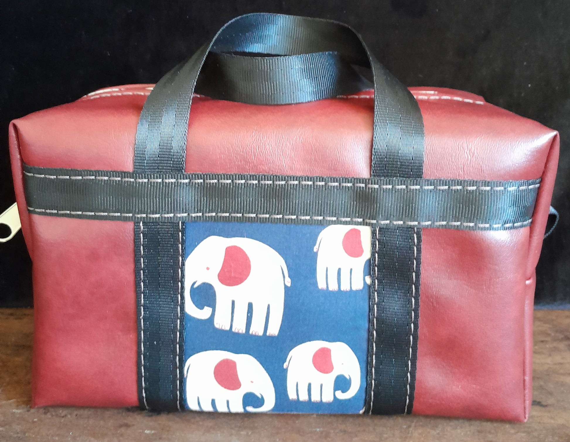 'Simply Elephants' Antiqued burgundy vinyl with cute cotton elephant feature panel in navy blue and cream colours.